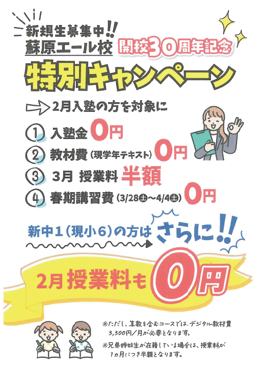 現在、蘇原エール校は「30周年キャンペーン」を行っています。